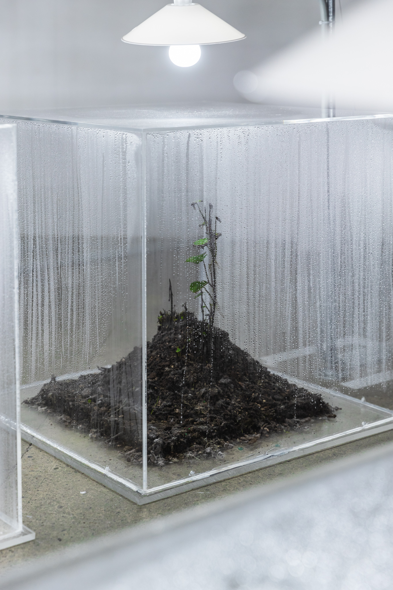 A second major conceptual work is Te Kete Rokiroki, previously seen in different iterations at The Dowse Art Museum and The Blue Oyster Art Project Space, and exhibited at Trish Clark Gallery in 2024. As Thompson explains, Te Arawa traditions speak of the kūmara being brought to Aotearoa by Whakaotirangi where it became increasingly important to Māori. Kūmara are associated with the atua Rongomātāne, who is not only the atua of cultivated plants, but also of peace. Grown from tupu or ‘slips’ which are sprouts grown from kūmara from the previous harvest, and collectively tending them, is to take care of and share the stories and mana of not only my koro, but of all our tupuna. Te Kete Rokiroki becomes a venue for sharing and discussion through the collaborative maintenance of the māra kūmara (kumara garden), which provides us with fertile ground and stable footing with which to grow our own narratives to take forward.